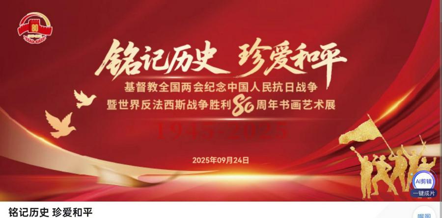 2025年9月24日上午,“铭记历史 珍爱和平——基督教全国两会纪念中国人民抗日战争暨世界反法西斯战争胜利80周年书画艺术展”在上海市浦东新区基督教涌恩堂隆重开幕。此次展览由基督教全国两会主办。基督教全国两会本届委员会委员、上海市民族宗教局负责同志,以及参展艺术家等嘉宾出席了活动。